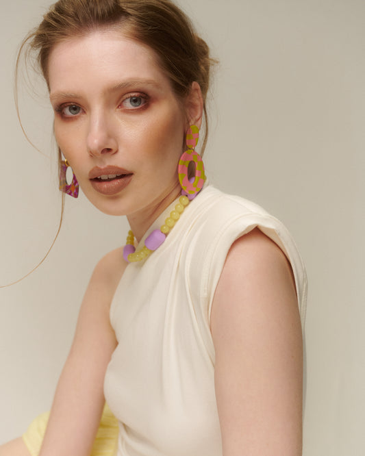 AROS CLAVEL + COLLAR MARGOT LILA NARANJO