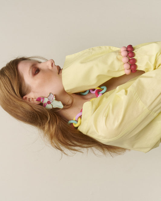 COLLAR BOLAS Y CILINDROS VERDE PISTACHO Y LILA