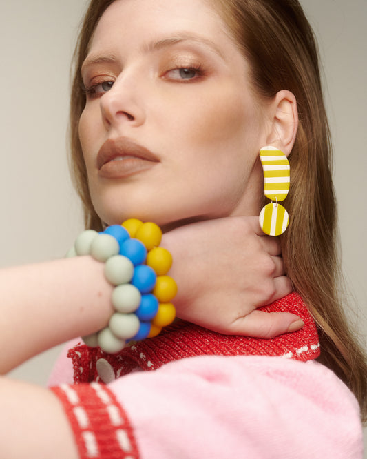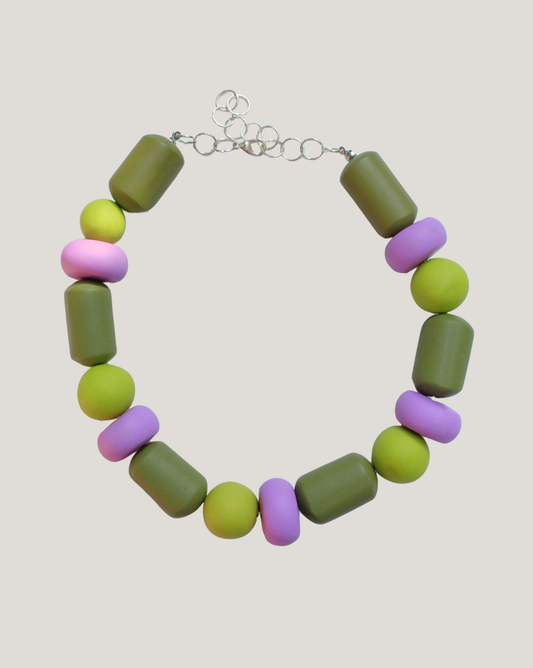 COLLAR BOLAS Y CILINDROS VERDE PISTACHO Y LILA