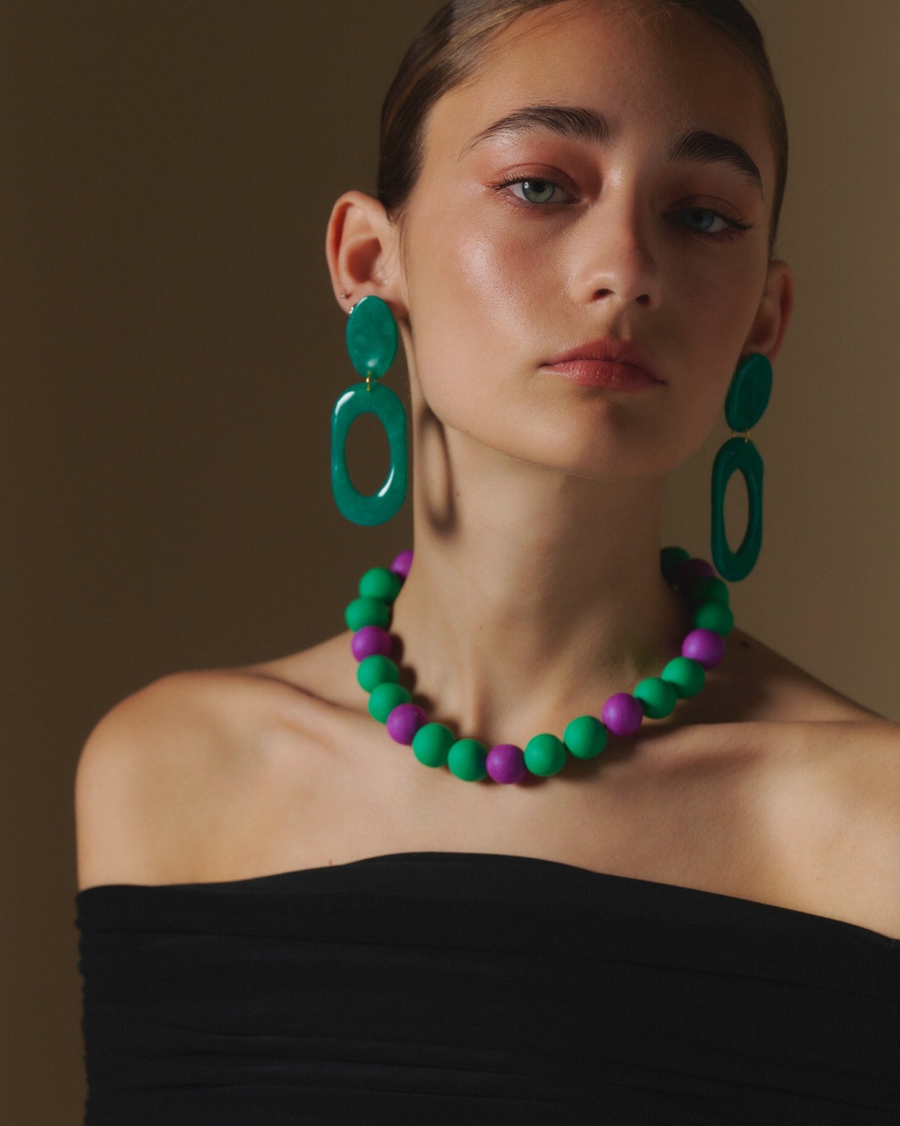 AROS AMBRA + COLLAR DUO VERDE MORADO