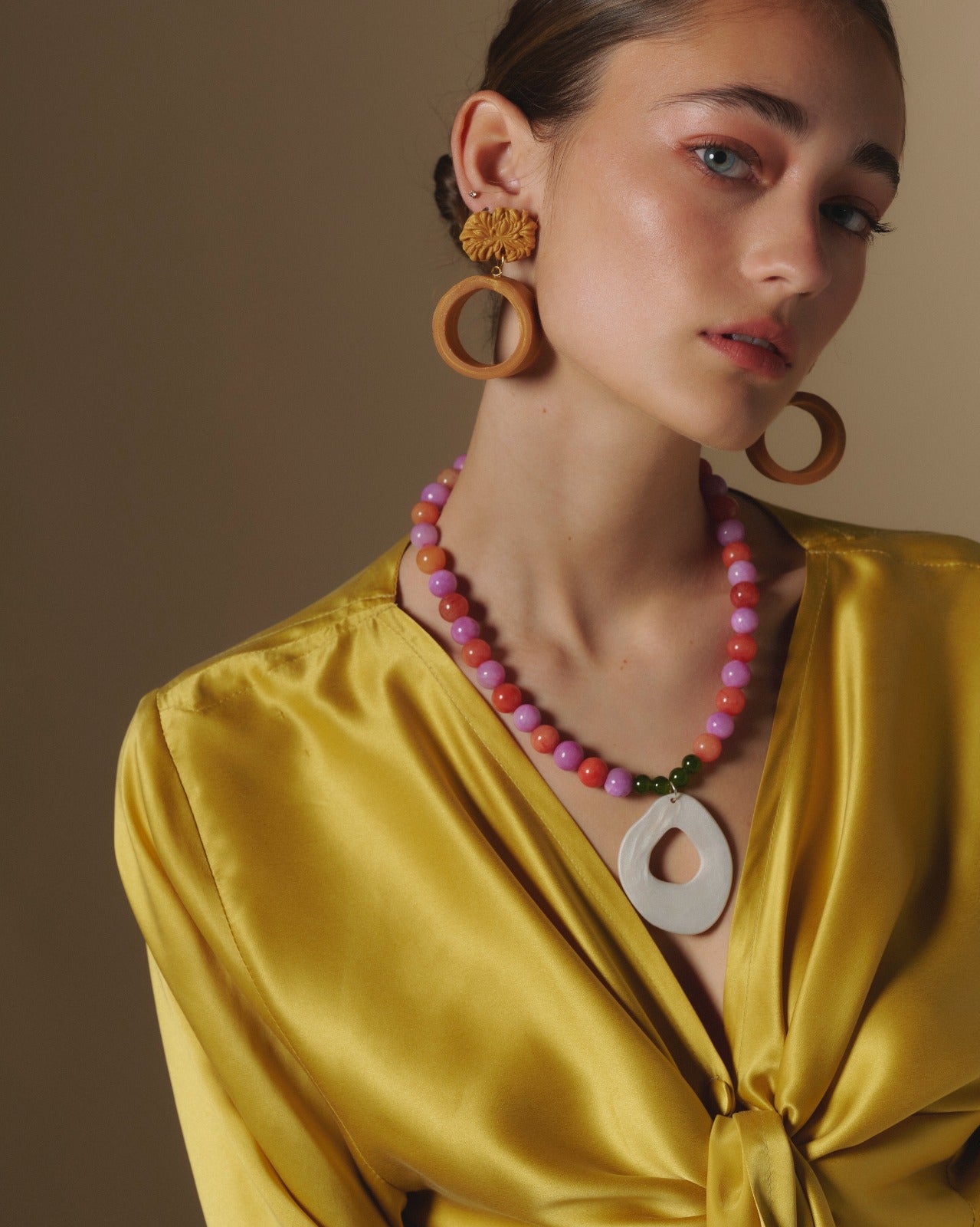 Conjunto de aros y collar de arcilla polimérica, diseñado y fabricado a mano.