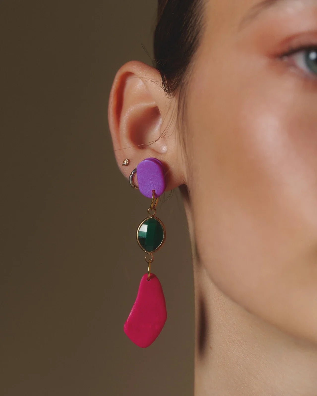 COLLAR FUCSIA VERDE JULIETTE + AROS GIORGIA MORADO FUCSIA VERDE