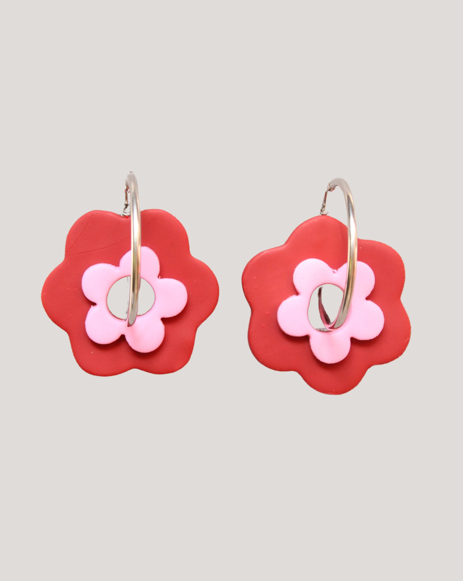 AROS FLOR ROJO ROSADO CON ARGOLLA DAHLIA